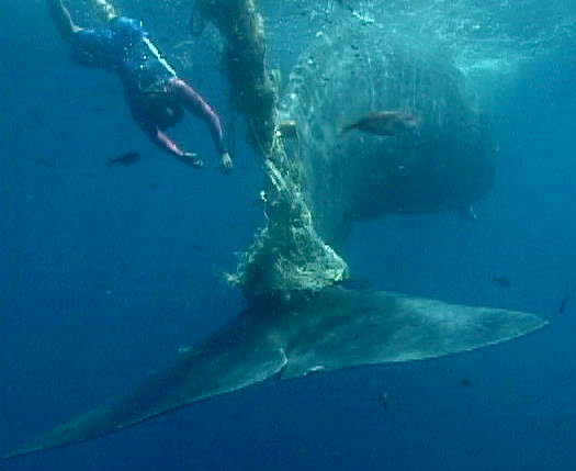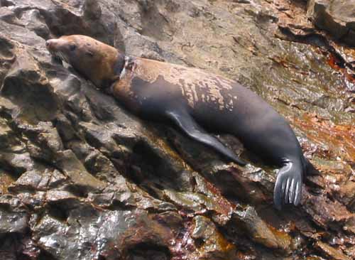 Our wonderful Sea Lions at San Pedro Nolasco Island are in trouble, as are the magnificent whales that pass through this area. In the past few years, there have been many deaths from "Gill Nets". There are currently a few of these magnificent creatures that have managed to break free from the nets, only to be strangled by the cords and monofilament lines remaining around their necks or suffocated from the nets wrapped around their tails. Amigos del Mar de Cortez, Desert Divers (Tucson) and many others, have been working to end the practice of fishing with indescriminate nets (and long lines) in the Sea of Cortez, especially around San Pedro Nolasco Island. There are estimates that there is currently enough netting just floating around in the Sea of Cortez to cover the Baja Peninsula 5 times! Presentations to Presidente Vicente Fox in early September, 2003, carried many well known local names and national celebrities such as Paul Humann. The pictures, below, were courtesy of John Brakey, Craig Klein and Drew Vactor. The story is Cheryl Klawon's personal account of a trip in mid-August, 2003. If you want to learn more and/or help, click HERE. |